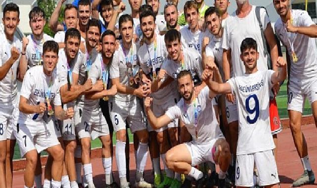 Türkiye Üniversite Sporları Federasyonu’nun (TÜSF) 2023-2024 Sezonu Futbol Süper Lig Finali’nde Kütahya Dumlupınar Üniversitesini olağan müddeti 0-0 sona eren karşılaşmada penaltı atışları sonucunda 3-2 mağlup eden Ege Üniversitesi, şampiyonluğa ulaştı.